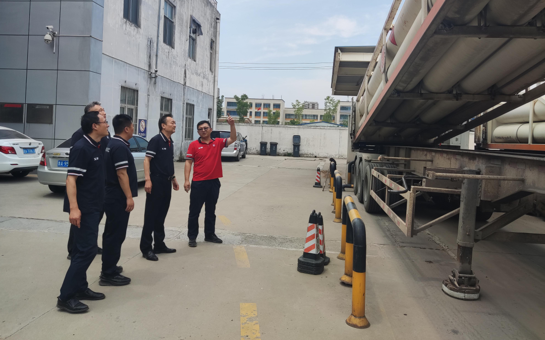 公司班子成员现场检查了加气充装设备,并要求油气卸车过程、设备设施安全检查和员工应急技能要严格按照公司制度规范操作。