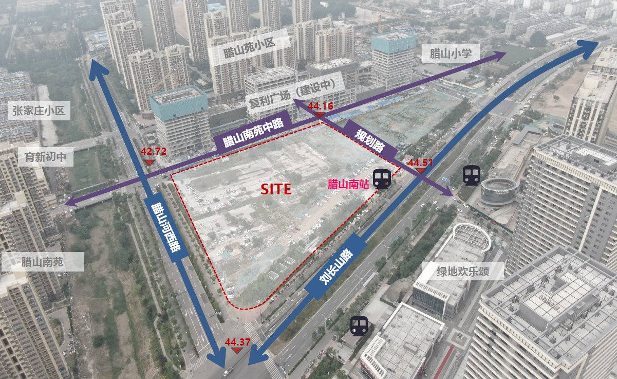 项目位于济南槐荫区腊山片区刘长山路以北、腊山河西路以东,片区属于南城发展区,距济南西站约6. 3km,距离济南站约9.4km。项目定位为打造以休闲、娱乐、餐饮为主的一站式综合商业。