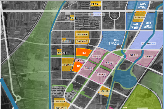 项目位于齐鲁大道以西、兴福寺路以北,京沪高铁济南西站以东,在总规、控规中均为商业商务用地。项目分为B-3、B-4两个地块,B-3地块主要包含6栋建筑,主要功能含有商务办公楼、酒店;B-4地块主要包含3栋建筑,主要功能含有商务办公楼、酒店及商业。