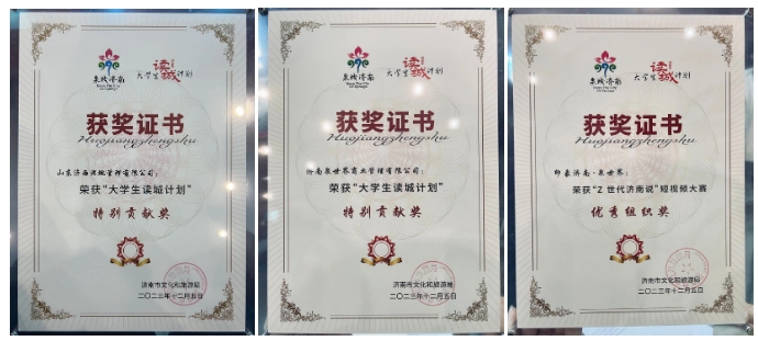 济西湿地与泉世界商管公司荣获济南市文旅局“大学生读城计划”特别贡献奖及短视频大赛优秀组织奖