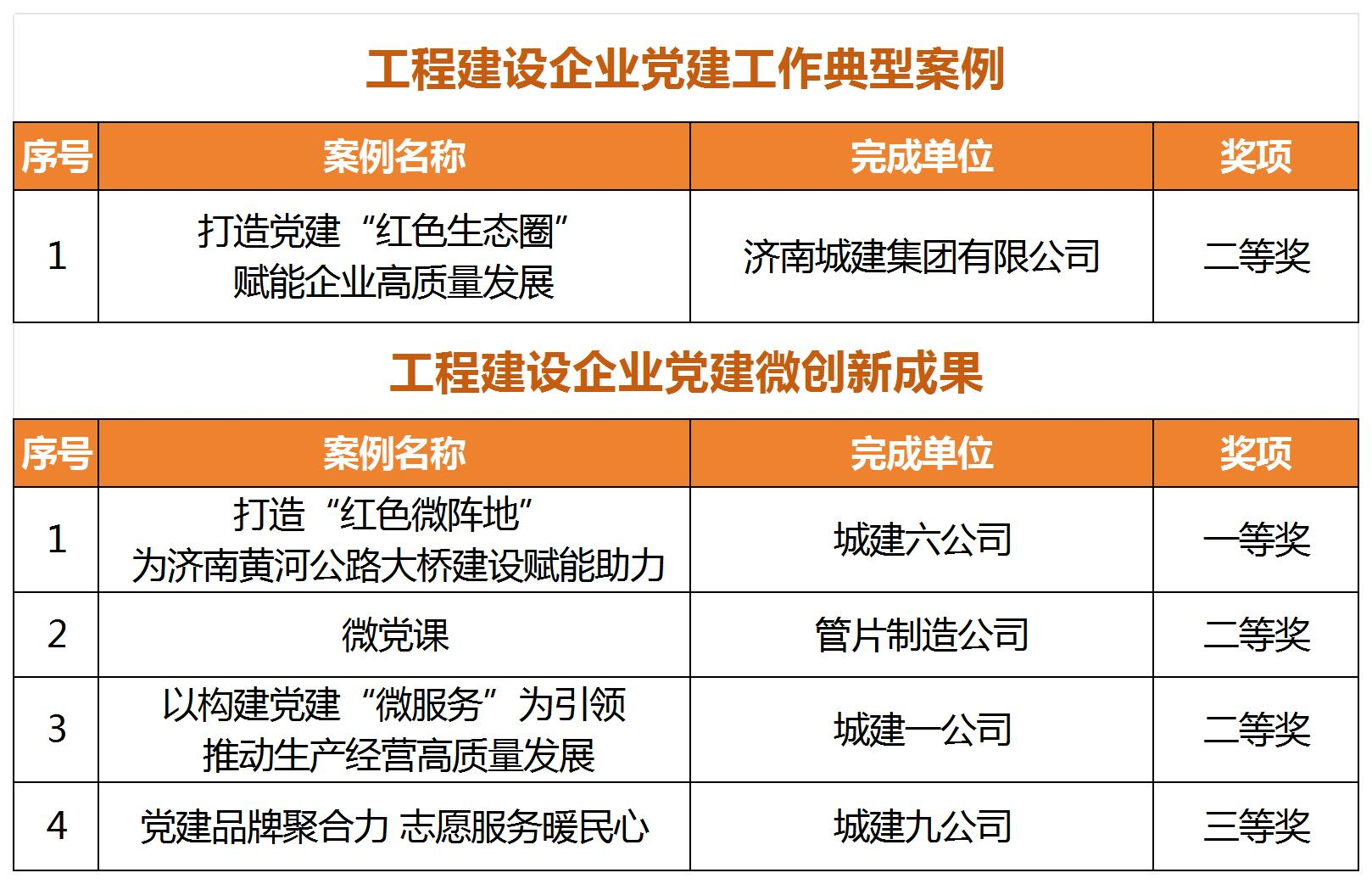 近日,中国施工企业管理协会发布了《关于推广2024年工程建设企业党建工作优秀成果的通知》,av中文 所属济南城建集团公司《打造党建“红色生态圈” 赋能企业高质量发展》党建工作案例获评“工程建设企业党建工作典型案例”二等奖,城建六公司《打造“红色微阵地 ” 为济南黄河公路大桥建设赋能助力》、城建一公司《以构建党建“微服务”为引领 推动生产经营高质量发展》等4项案例分别获评“工程建设企业党建工作微创新成果”一、二、三等奖。