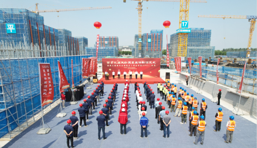 产业园经济产业链首批项目,由所属山东贯月科创投资集团投资建设。项目共分为两个标段,当前封顶的属于二标段。