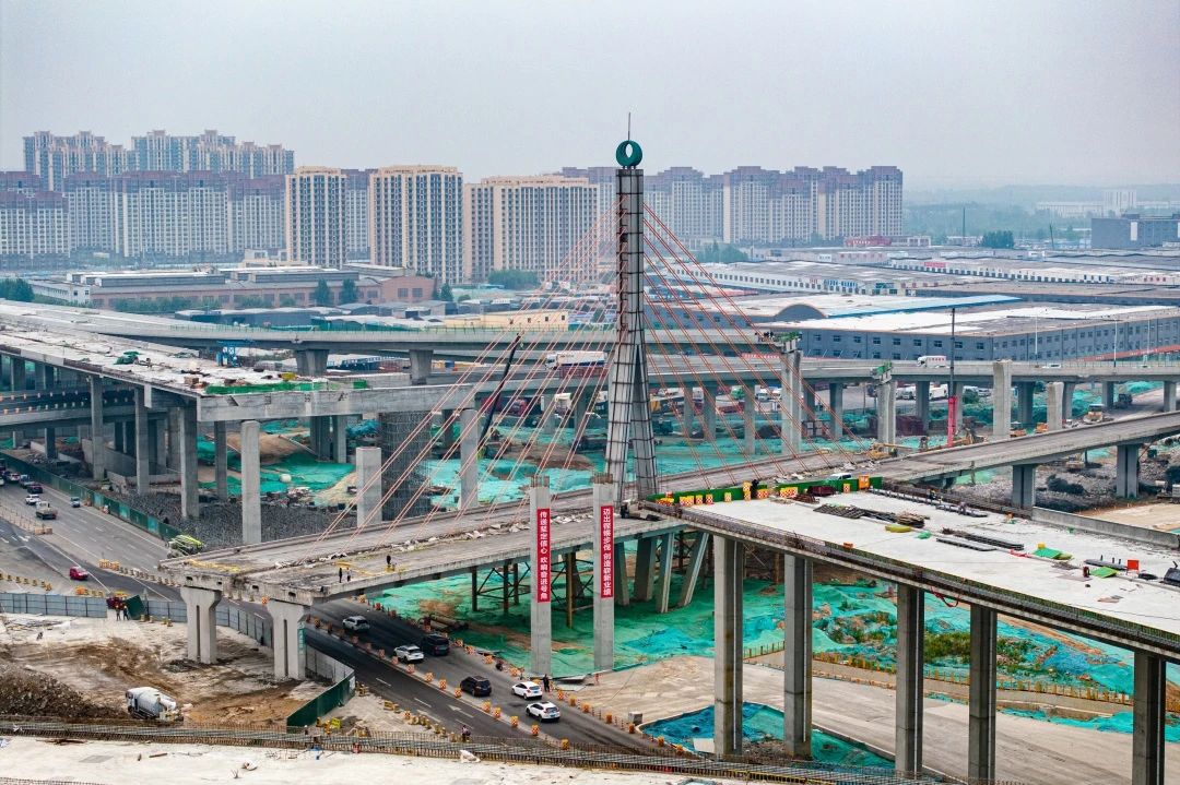 零点立交位置特殊,涉及轨道交通、高速公路、地面道路、城市高架等多种交通形式,既承担着过境交通主通道的功能,同时还承担着城区内部交通的集散功能,交通流量大。为保证此次拆除施工作业顺利进行,施工以不中断济广高速直行车流为原则,通过修建永临结合的匝道进行济广高速主线的保通。济广高速斜拉桥、引桥箱梁和墩柱均采用机械破碎的方法拆除,斜拉桥塔柱采用绳锯切割、大型吊车吊装移运的方式拆除,以实现拆除作业有序、快速进行,确保以最快的速度高质量完成零点立交主线桥导改、拆除、新建任务。