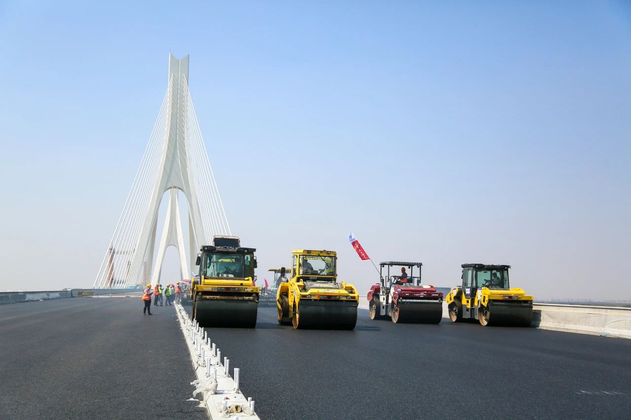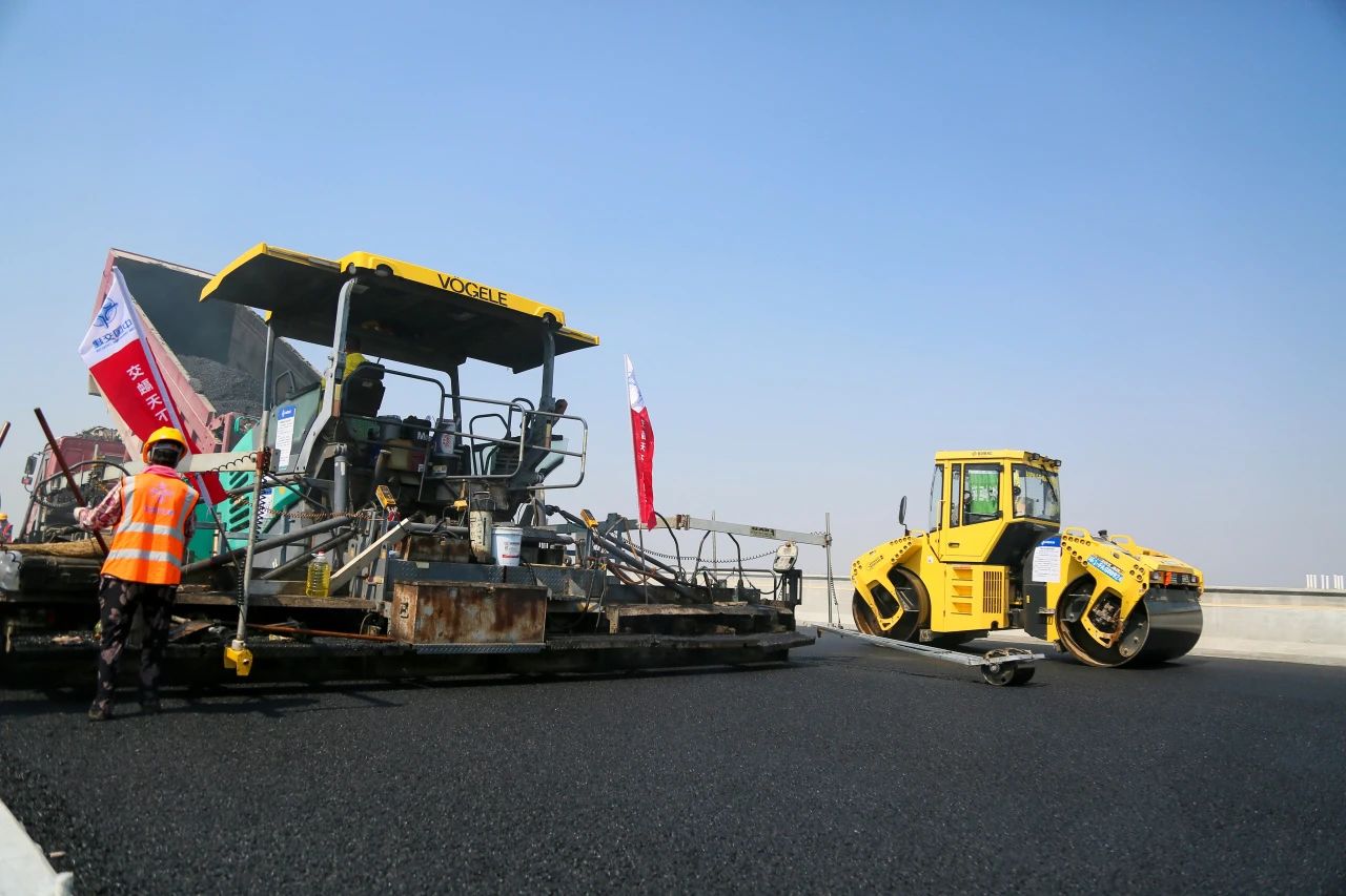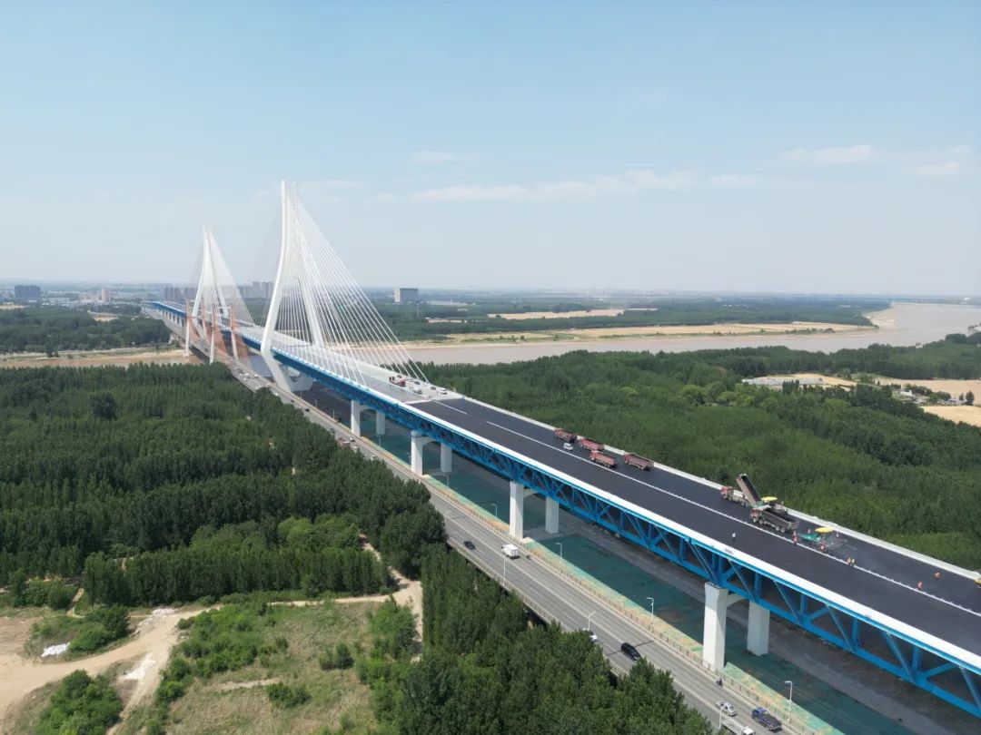 承建的G104京岚线济南黄河公路大桥扩建工程的桥面沥青摊铺工作已全面展开。目前,大桥北岸桥面沥青铺设已经完成,南岸的摊铺工作也正在紧锣密鼓地进行中,标志着大桥距离正式通车又迈出了坚实的一步。
