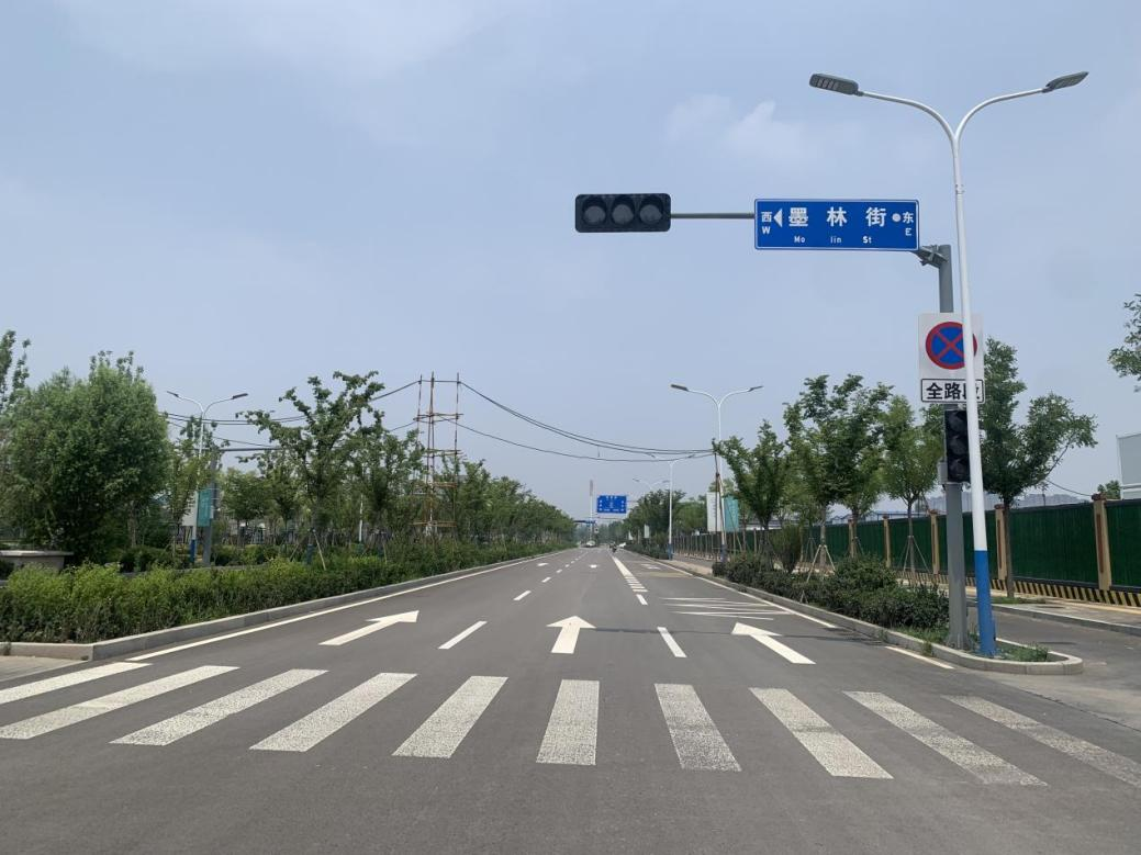 聊城路西延新建道路全长802.71米,其中西段西起月牙路东至顺安路北延,红线宽度25米;东段西起顺安路北延东至纵四路,红线宽度24米。