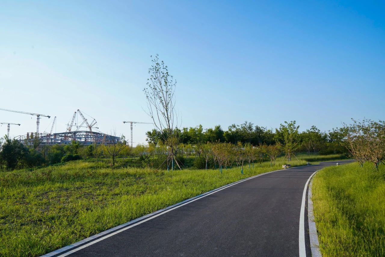 项目位于石济黄河公铁两用桥至济南黄河凤凰大桥段黄河北岸淤背区内,实施范围为堤顶路北侧的水工建设用地,南北向约100m。项目西邻崔寨片区,东临堤顶路,与崔寨片区规划路和滩区道路联系紧密;北邻黄河体育中心,为黄河沿岸重要的城市节点和起步区区域地标。项目施工总面积368695m²,主要建设内容为绿化苗木栽植,园路施工,景观照明,公厕管理房,附属设施等。