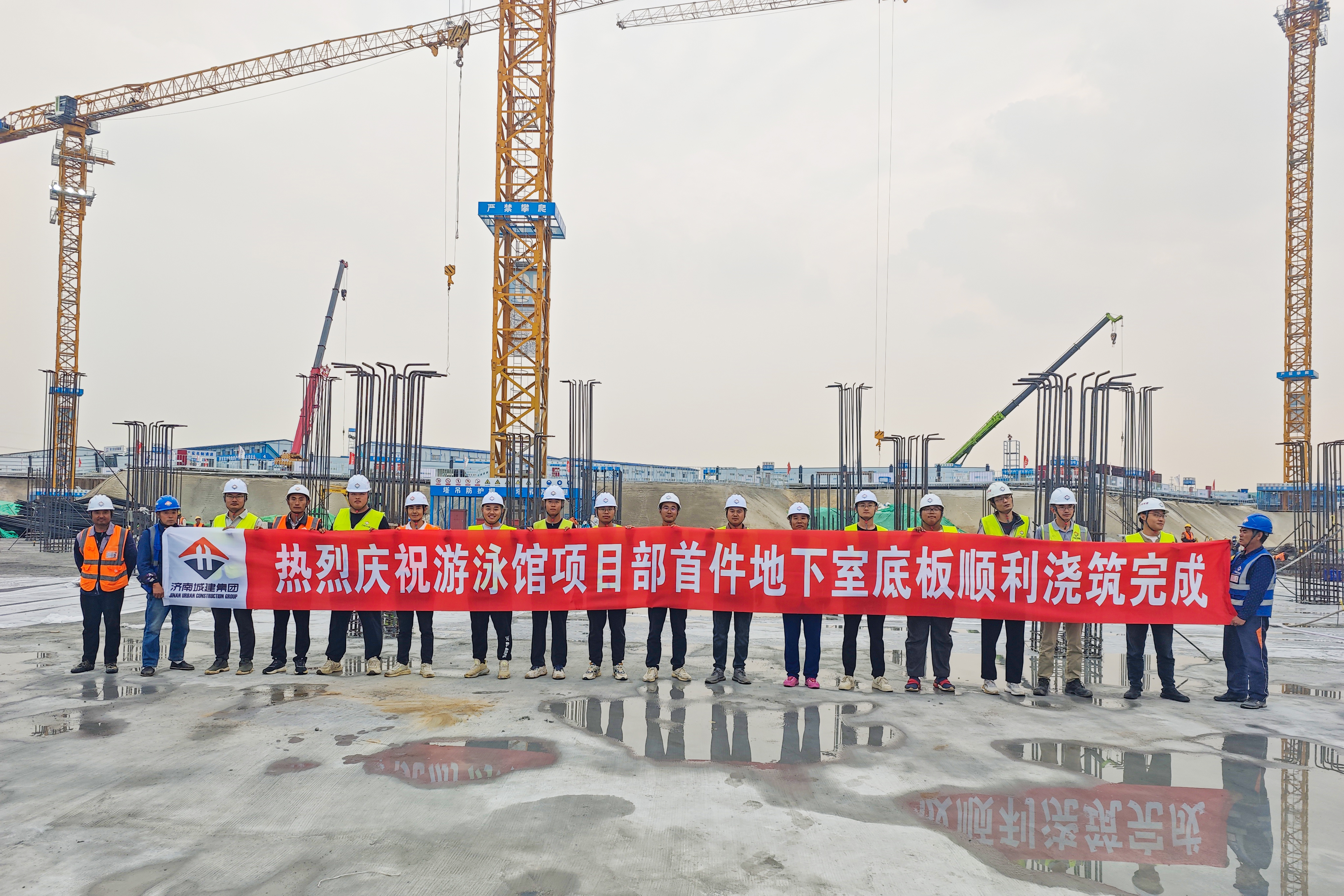 受委托建设的济南黄河体育中心游泳馆项目首块筏板浇筑完成,项目进入主体工程实质性施工阶段。