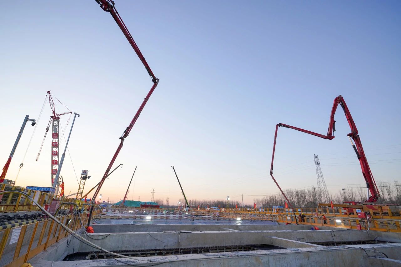 东岸主体结构分为16个独立仓段进行施工,钢筋总量约9500吨,混凝土总方量约4.4万方。主体结构施工过程中面临诸多挑战与困难,施工过程中严格按照施工计划,精心组织、科学管理,对16个独立仓段合理划分施工区域,依次展开作业。各施工班组紧密配合,确保钢筋绑扎、模板安装、混凝土浇筑等工序有序进行。2024年8月19日主体结构正式开始施工,截至12月29日主体结构完成整体封顶,比原计划工期提前28天,为后续盾构始发奠定了坚实的基础。