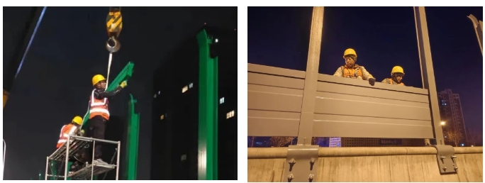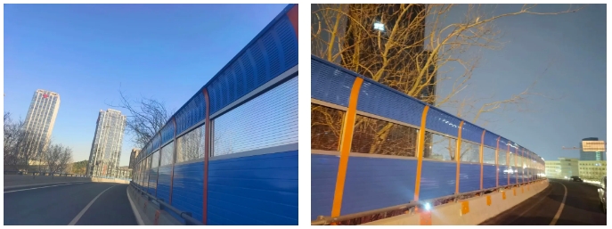所属山东金宇信息科技集团有限公司承建,工程设计总长8478.06米,涉及工业北高架桥、北园高架桥、二环西高架桥、二环南高架桥、纬六路高架桥、燕山立交桥、白马山隧道等路段。施工内容包含2.233m、2.5m、2.683m高直弧形声屏障以及3.5m高直弧形声屏障、3.5m高顶部带吸声筒形声屏障,部分声屏障基础采用骑马钢板形式、部分声屏障基础采用植入化学锚栓形式。该项目于2023年8月15日开工,历时214天,于2024年3月15日竣工。