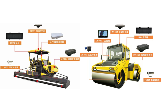 城建集团公司创新应用的“数字化、智能化生产监控系统”,通过GNSS天线、AP智能组网终端、TS温度传感器等外置设备,将摊铺机与压路机进行组网,同步采集摊铺数据,通过LED显示器实时显示摊铺速度、摊铺温度、碾压速度、碾压温度等关键参数,通过无线信号发射天线,实时上传数据至终端系统,施工管理人员通过数据把控施工质量,可对质量进行追溯,实现对项目建设质量的精细化把控。