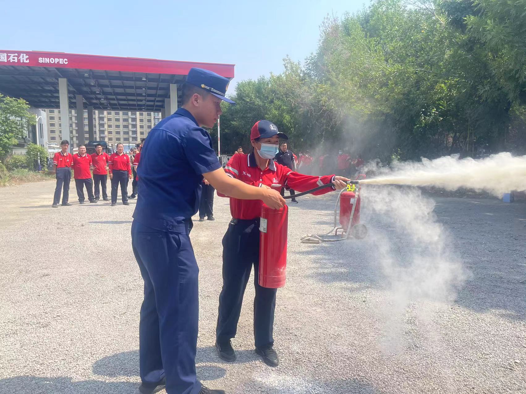 演练中,加油站员工按照平时的训练方法及演练方案,迅速开始实战演习,使用消防器材进行灭火,火情被控制后,及时清理现场。加油员们将学到的消防知识及操作技巧运用到演练中,增强了应急处理突发事故的能力,演练效果明显,达到了预期的目的。