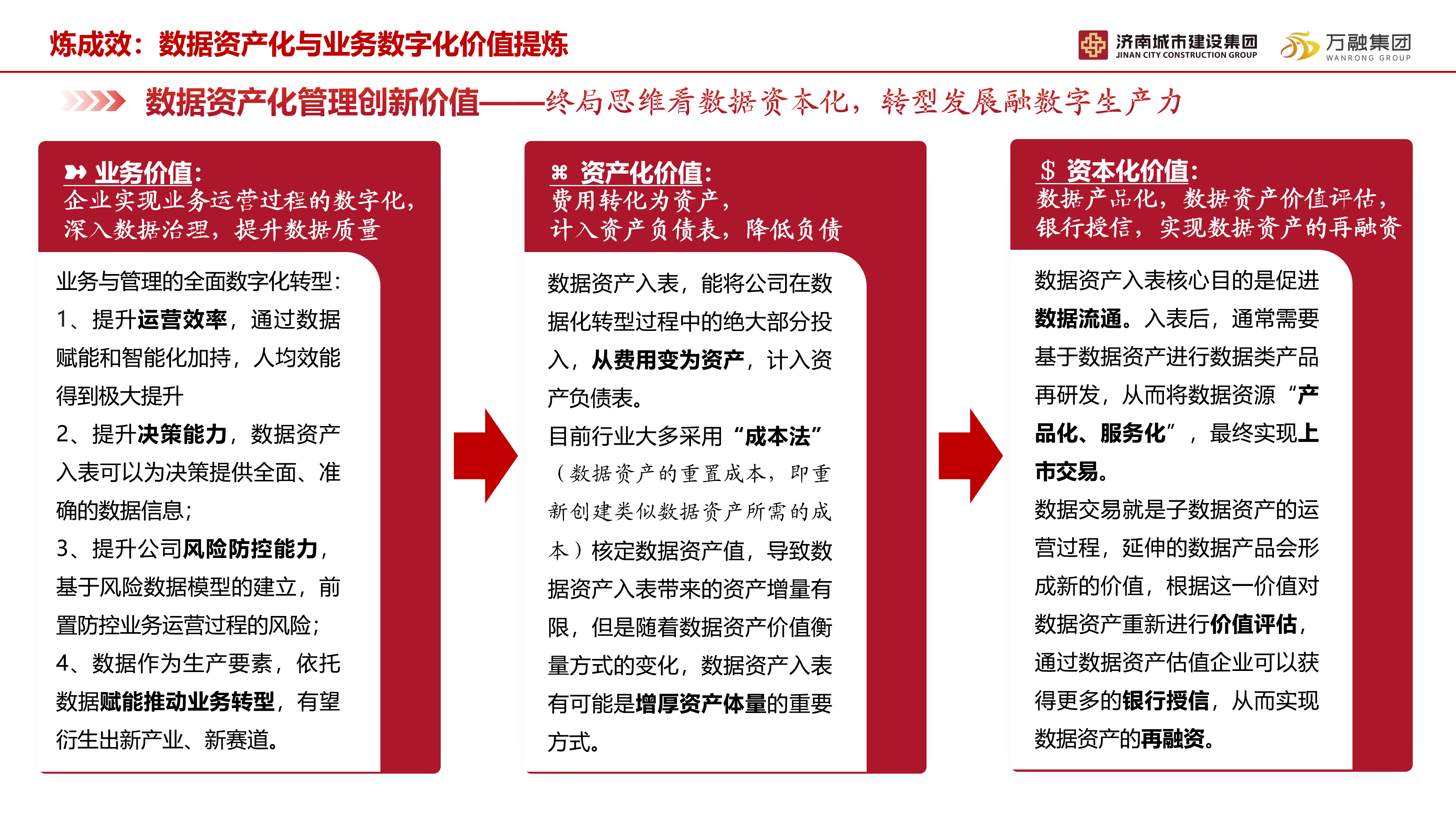 所属济南万融产业发展集团有限公司完成省内行业首例成本造价管理数据资产入表工作,标志着行业在数据治理和创新应用方面迈进一步,为促进数据资产流通、价值变现和业务升级,加快新质生产力的形成起到推动作用。