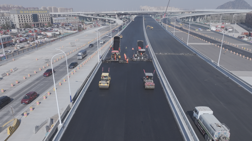 负责建设的济南黄河大桥零点立交段迎来最新工程进展,项目全面启动济广高速主线桥面沥青摊铺施工,标志着项目建设进入最后冲刺阶段,为顺利完成年中完工目标提供坚实支撑。